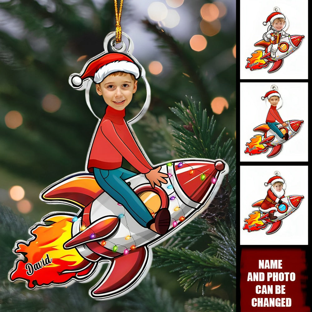 Kid Riding Rocket - Personalized Acrylic Photo Ornament