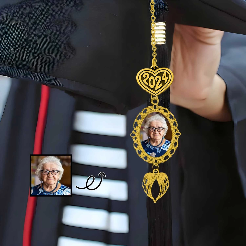 Keep your cherished memories close on your graduation day with this personalized graduation tassel charm and memorial photo charm. Capture the essence of your loved one by adding their photo to this custom keepsake, ensuring they're with you on this significant milestone. Whether it's for yourself or a dear one, commemorate a special person who may no longer be with us with this heartfelt gift.