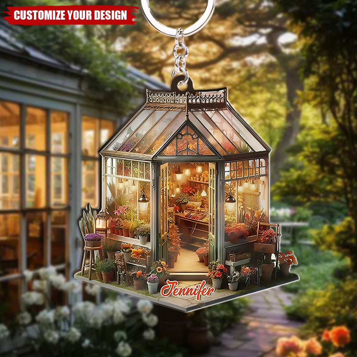 Personalized Greenhouse Garden Keychain, Gardening Keepsake, Gardener Gift