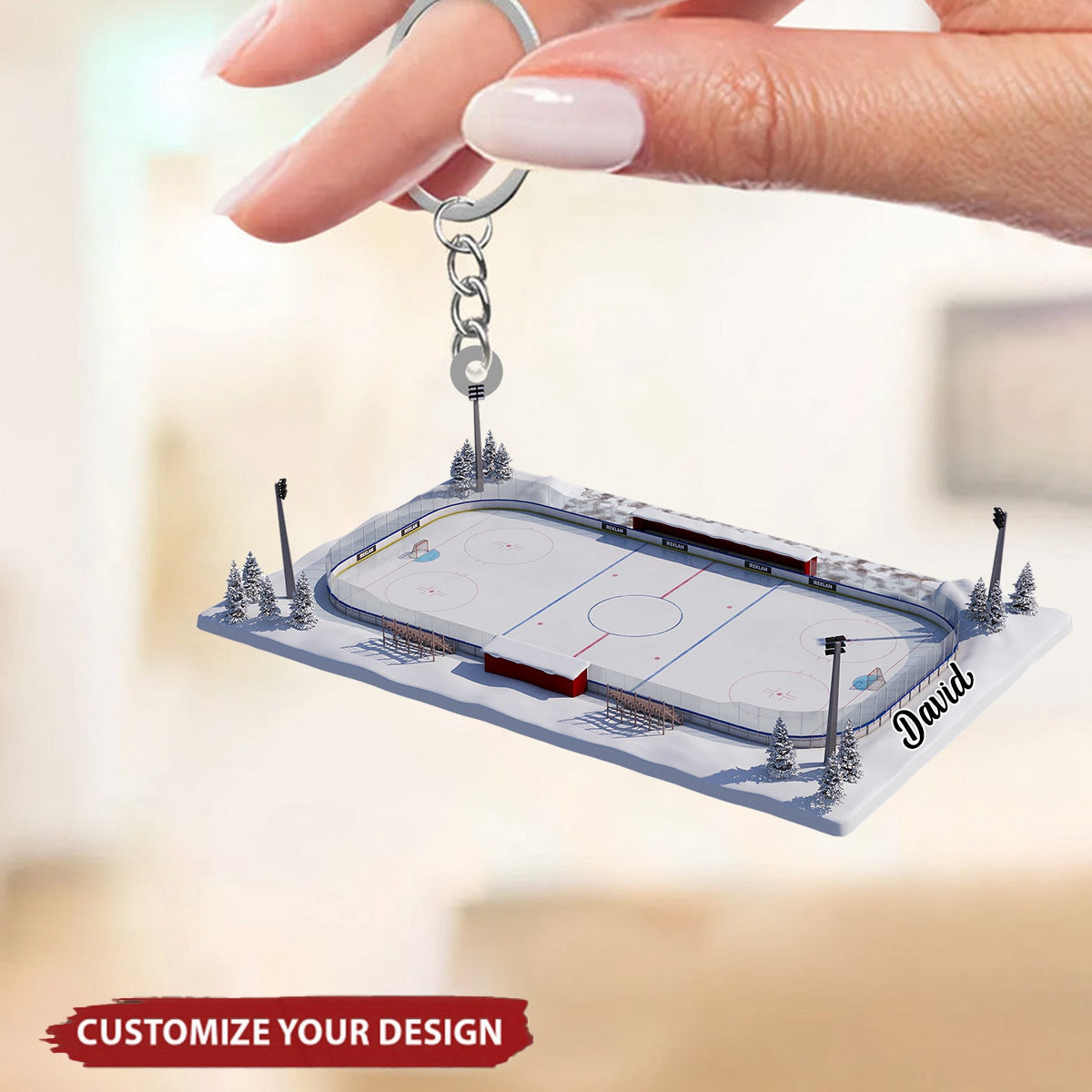 Personalized Ice Hockey Rink Keychain, Hockey Player Keepsake, Hockey Gift