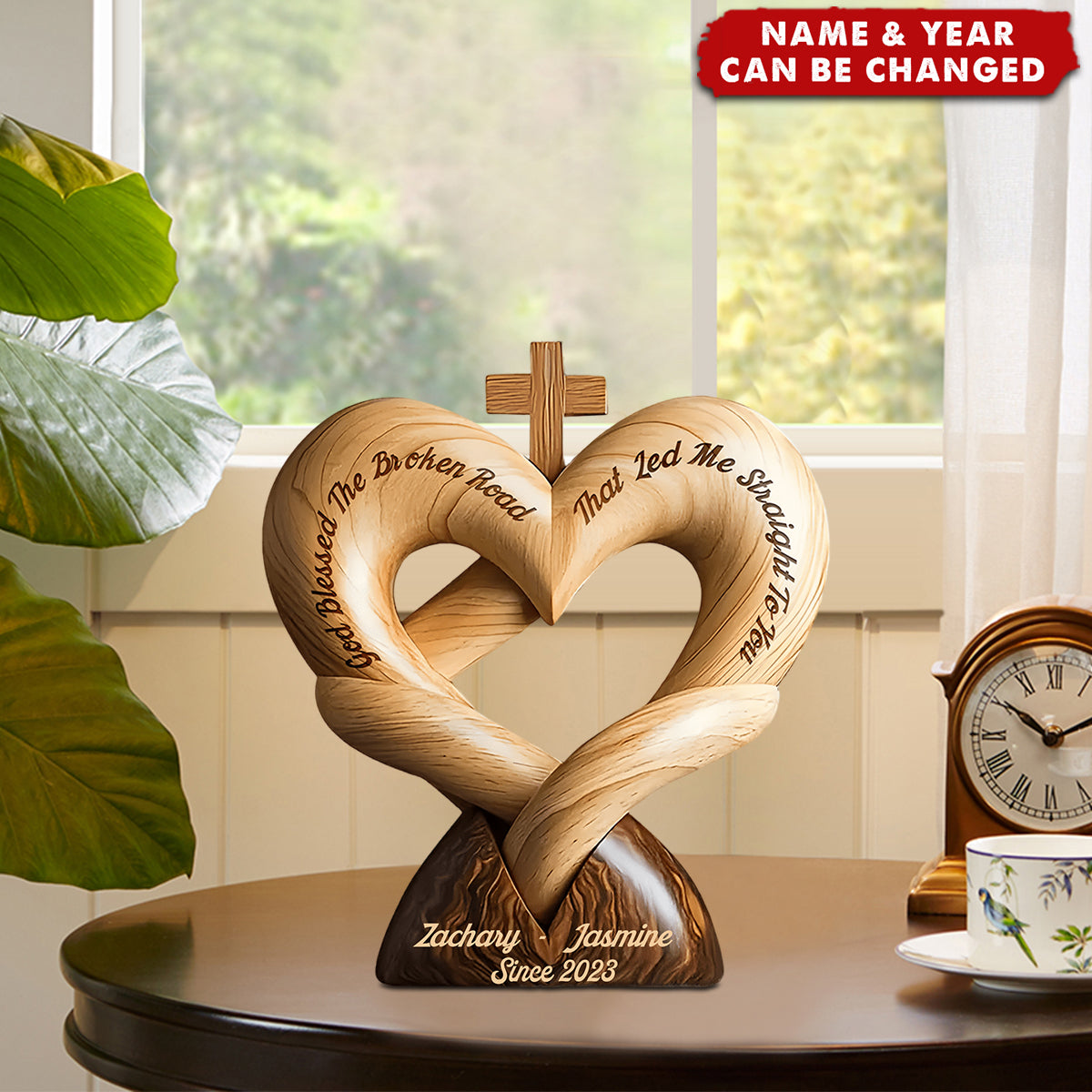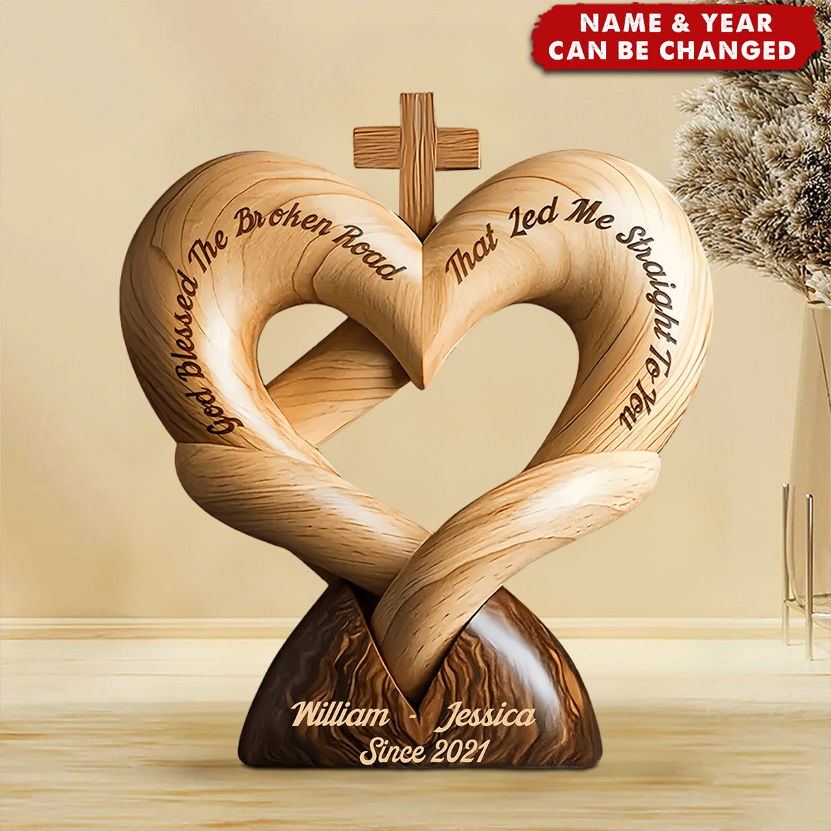 God Bless The Broken Road That Led Me Straight To You - Personalized Wooden Plaque, Gift for Couple